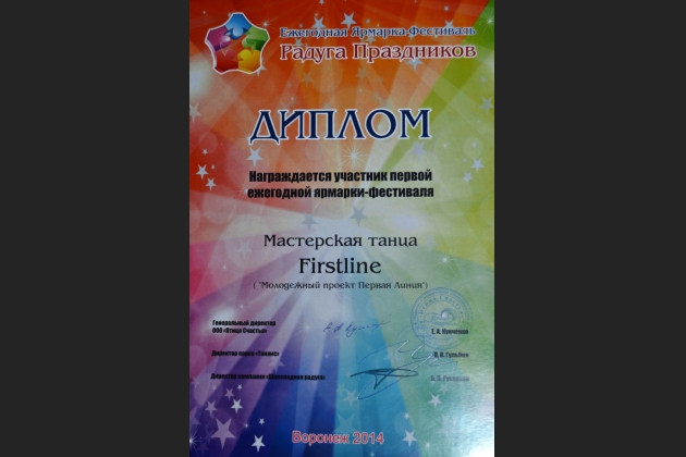 Танцевальная студия ВИВТ "Первая линия" приняла участие в ежегодной ярмарке фестивале "Ярмарка праздников", за что была награждена дипломом участника. Поздравляем!